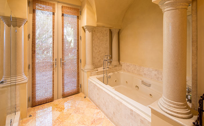 - Lush landscaping surrounds the private infinity edge pools and jacuzzi.