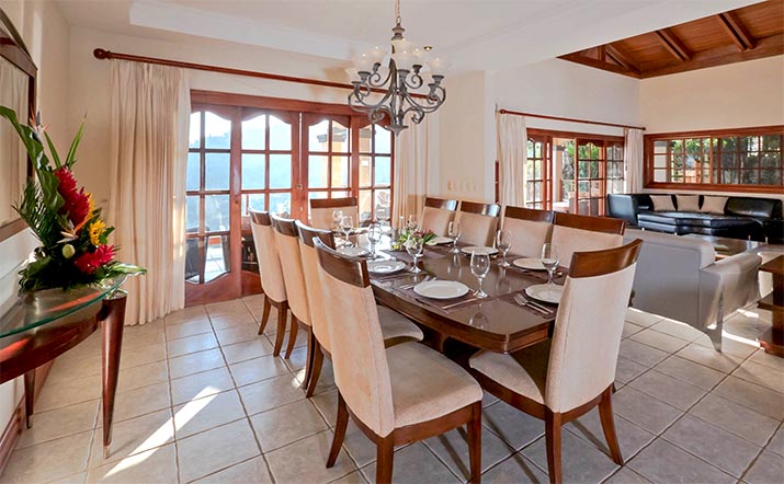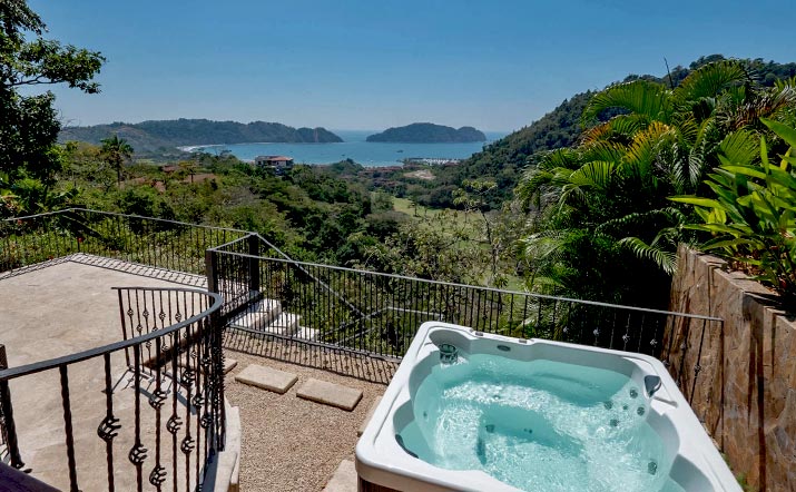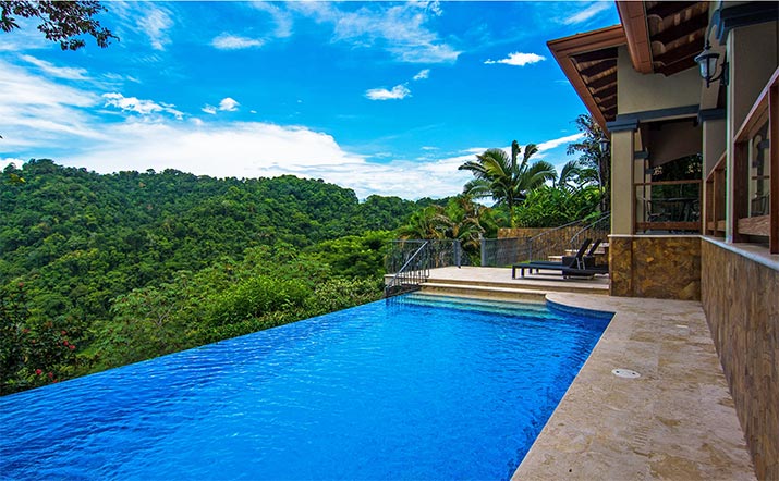 This beautiful five bedroom home located in the mountain top neighborhood of Vista Tres Bahias in Los Suenos Resort is perfect for large families and groups. This large home features an ocean view infinity pool, with stunning vistas of both Herradura Bay and the tropical rainforest. This home is ideal for those who want to have a spacious private home within the Los Sueños Resort with privacy and the ocean views.