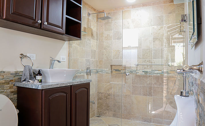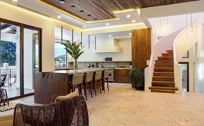 master bedroom with stunning en-suite, a gourmet kitchen with custom Guanacaste wood island