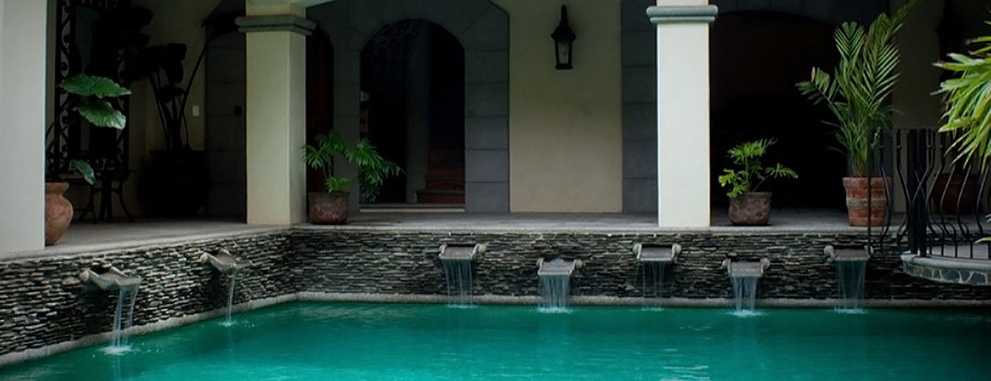 Located in the more desirable south beach in Jaco, Costa Rica, Villa Antigua has been awarded the most luxurious home in the vicinity. It sits just off of the beach, walking distance from the town itself. Surrounded by 9 foot high walls and a gated entrance, it proves to be both secure and private. Within the center of this beautiful home is a pool with running fountains and underwater lighting.