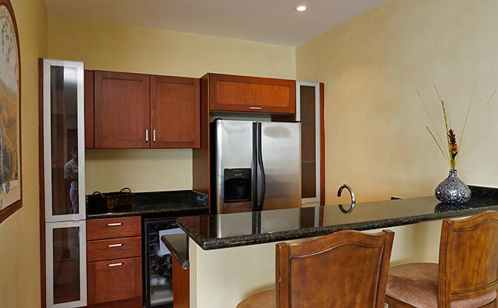 The living room-dining room-kitchen has an open floor plan with floor-to-ceiling windows with spectacular views of the Pacific Ocean, from one end of Jaco Beach to the other plus the rainforest. Don't miss anything... the great room is equipped with two flat panel televisions! The chef's kitchen is fully-outfitted for entertaining, including two commercial refrigerators.